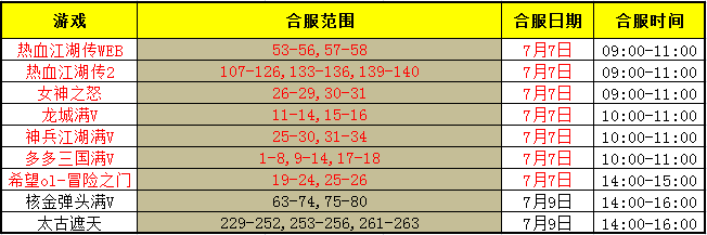 为优化服务器环境,进一步提高服务质量,并给玩家提供更多交流和互动的机会,部分游戏计划于每周二至周四进行合服(具体合服日期根据游戏实际情况而定)。合服为服务器数据互通,合服后登录入口不变。